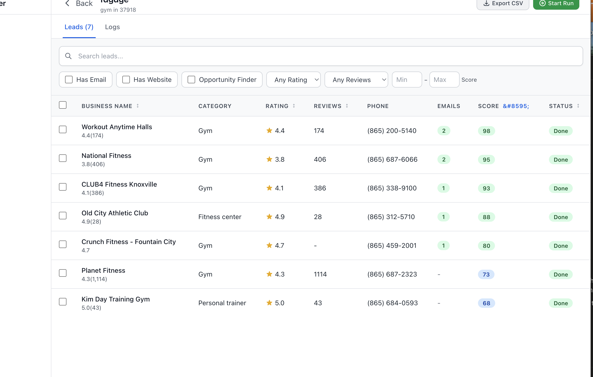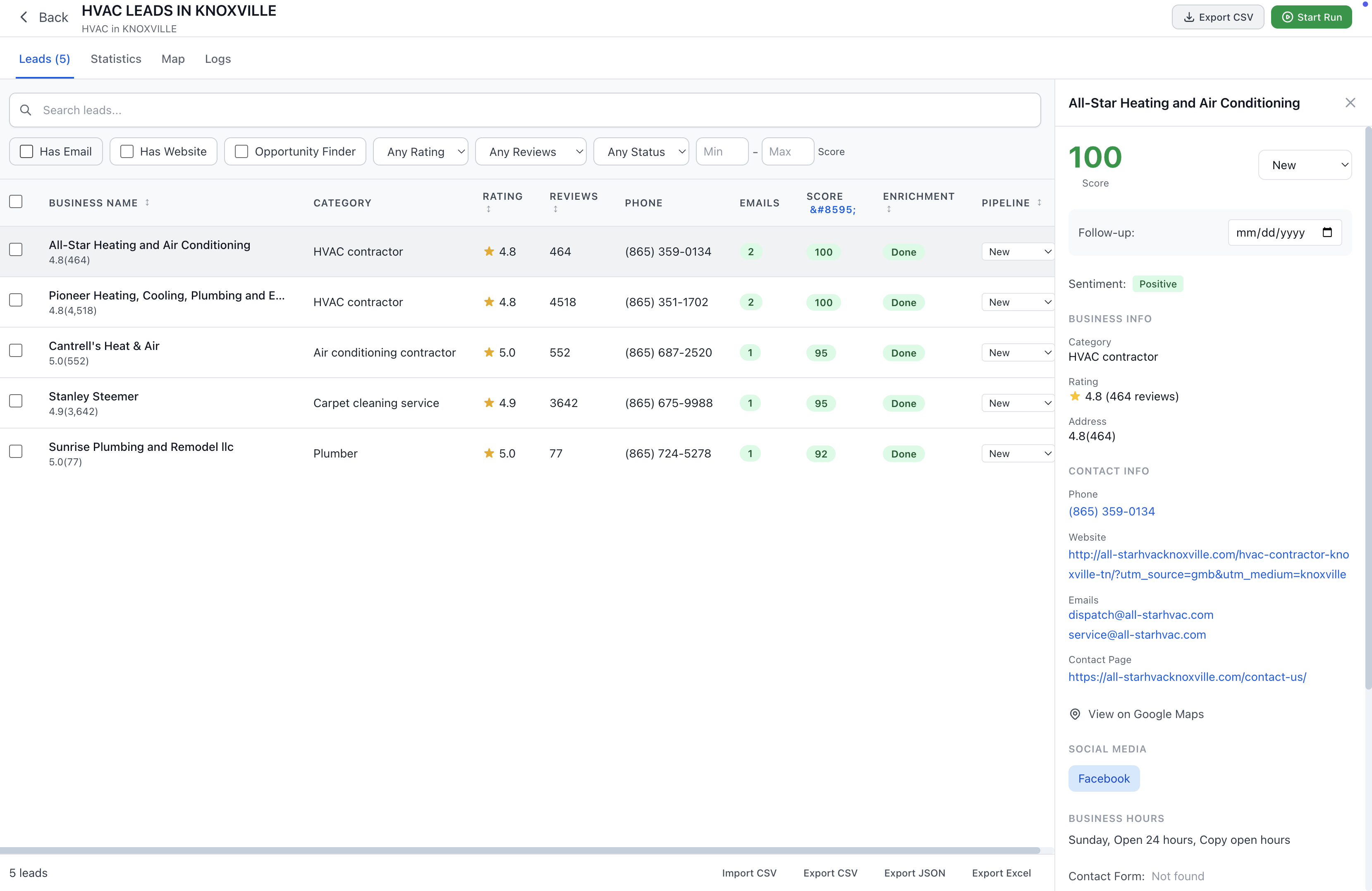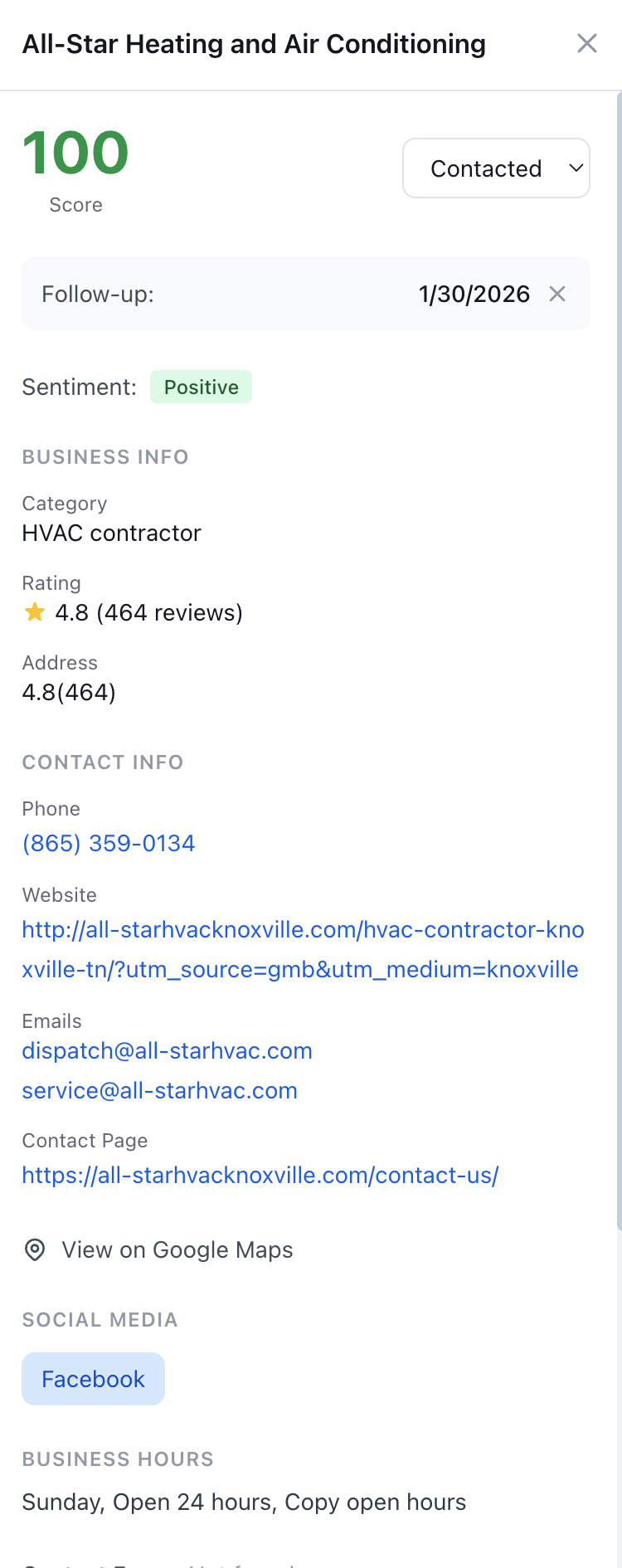 • Automatic Email Extraction - Finds emails from business websites
